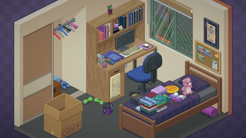 Entspannendes auspacken und platzieren virtueller Gegenstände. Chillige Musik, nette Pixelart.