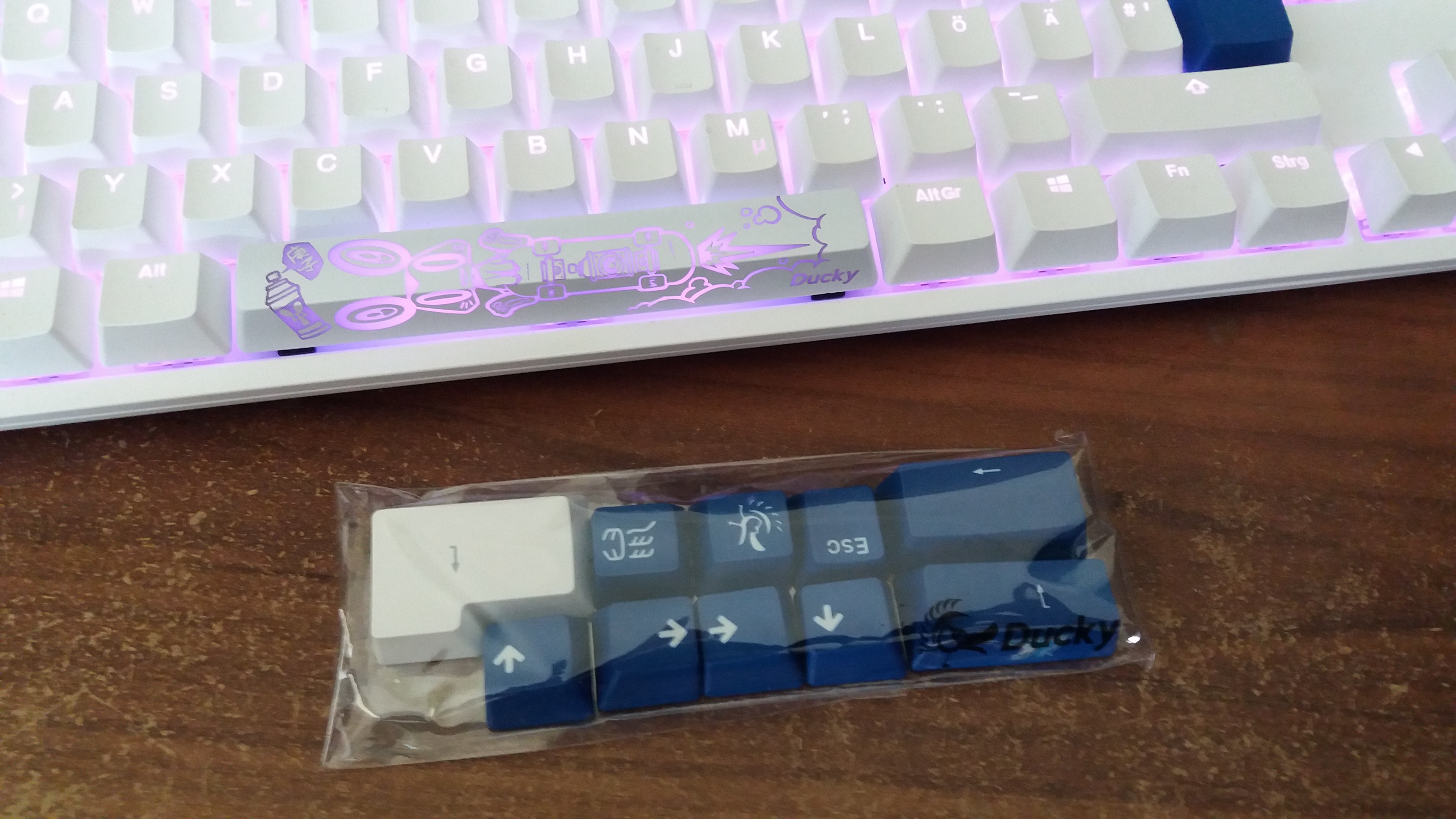 Der 10er Satz bunte Tasten und die aktuelle "Jahr der Ratte" Leertaste. (Die Normale bekommt man auch bei gelegt).